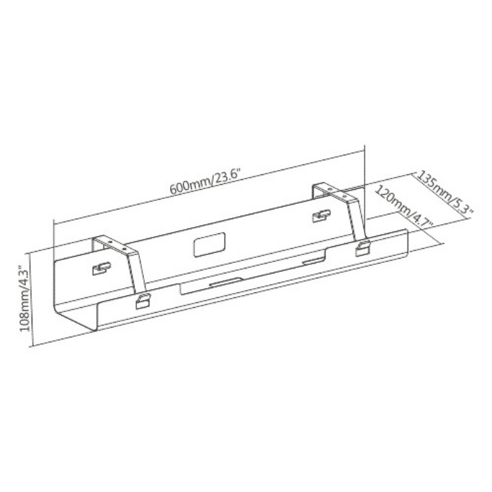 CS-60/1W – horizontalus dėklas, skirtas kabeliams ir maitinimo stočiai išdėstyti darbo vietoje. Montuojamas stalviršio apačioje, su skylėmis ventiliacijai ir kabeliams.
